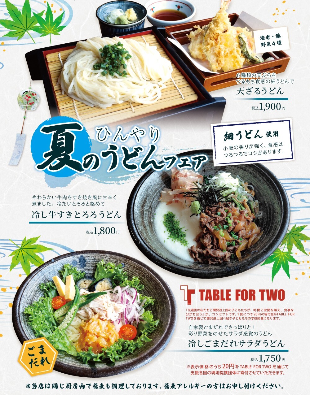 人気の天ざる冷やしうどんと、冷やしごまだれうどんに加わり