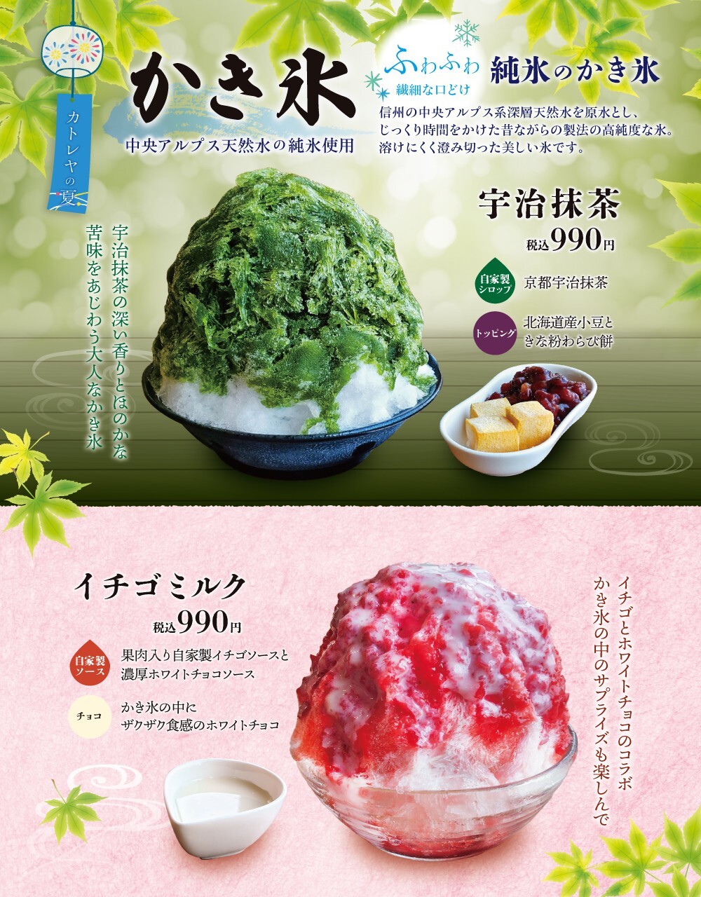 暑く火照ったお疲れ気味の身体を、カトレヤのかき氷で元気づけてください!
